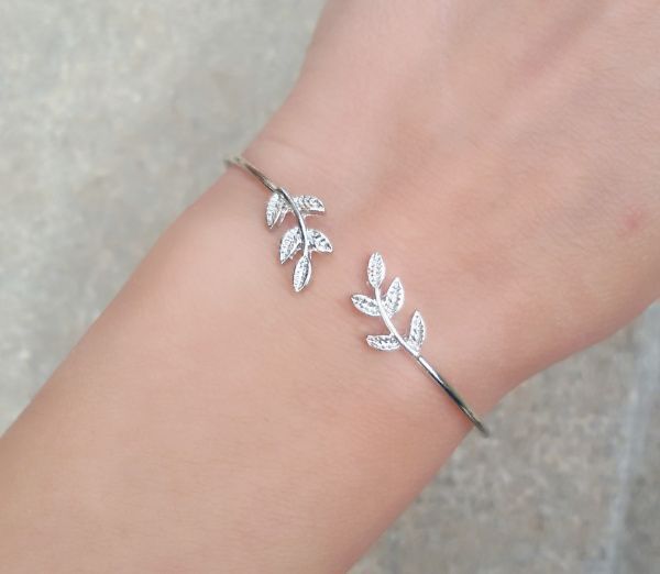 This silver leaf bangle bracelet is the perfect balance of elegance and nature-inspired charm. Designed with open ends adorned with delicately detailed leaves, it wraps gracefully around the wrist for a timeless look. Lightweight and comfortable, it can be worn alone for a minimalist statement or paired with other jewelry for a layered style. A versatile piece suitable for everyday wear, special occasions, or as a thoughtful gift for someone special.