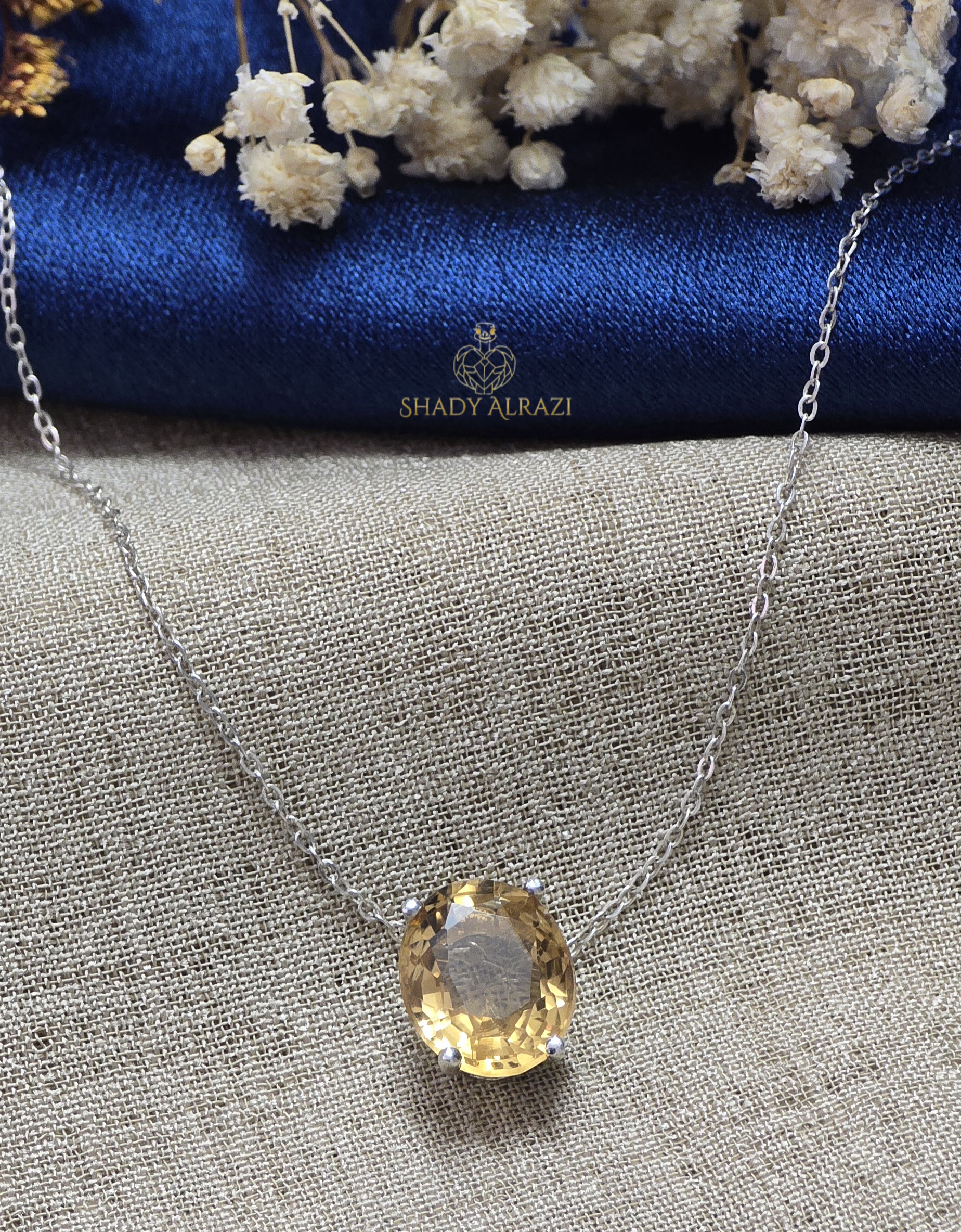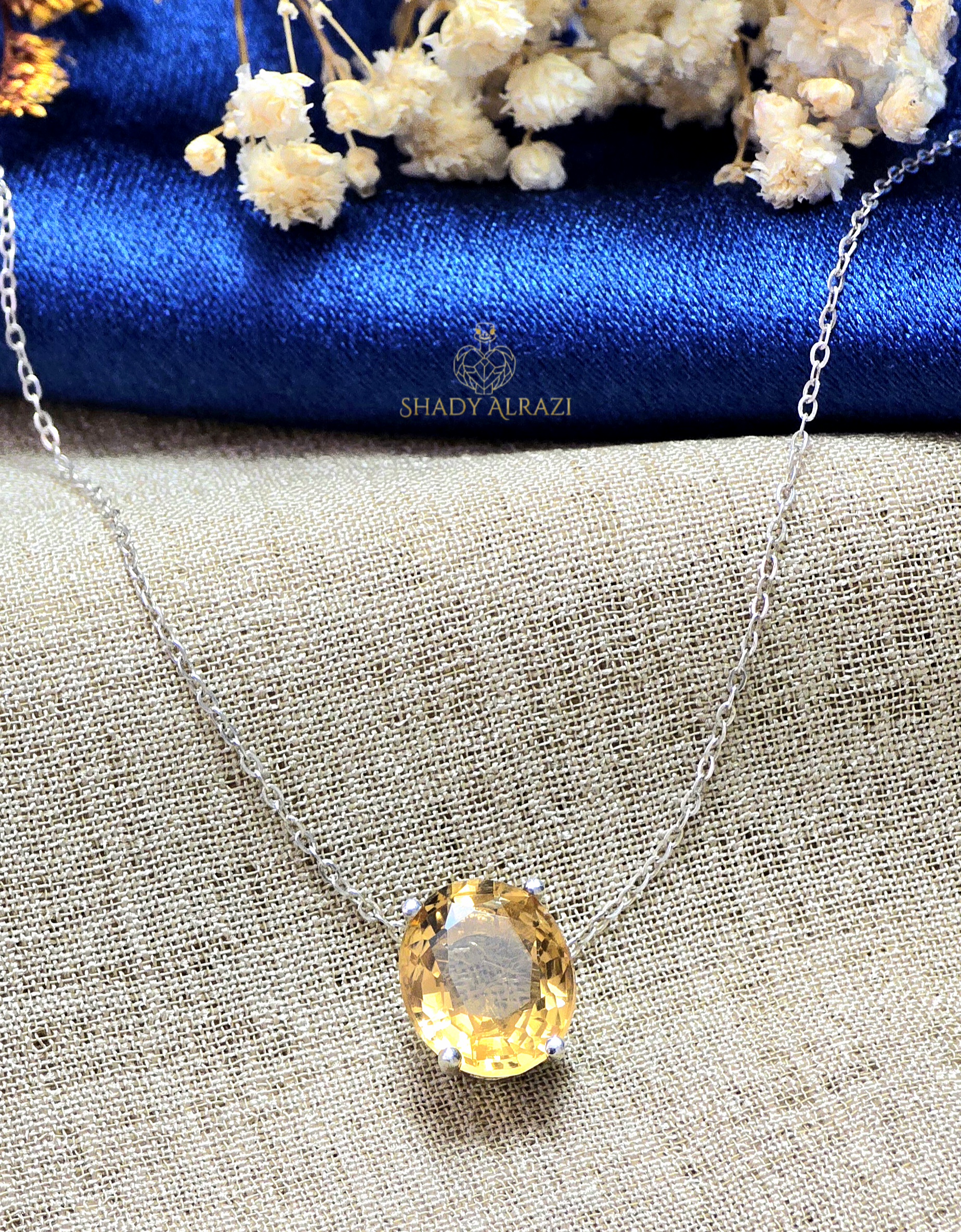 سلسلة فضة تتوسطها حجر سترين الذهبي، يشع دفء الشمس ويملأ الروح بالسعادة والإشراق.