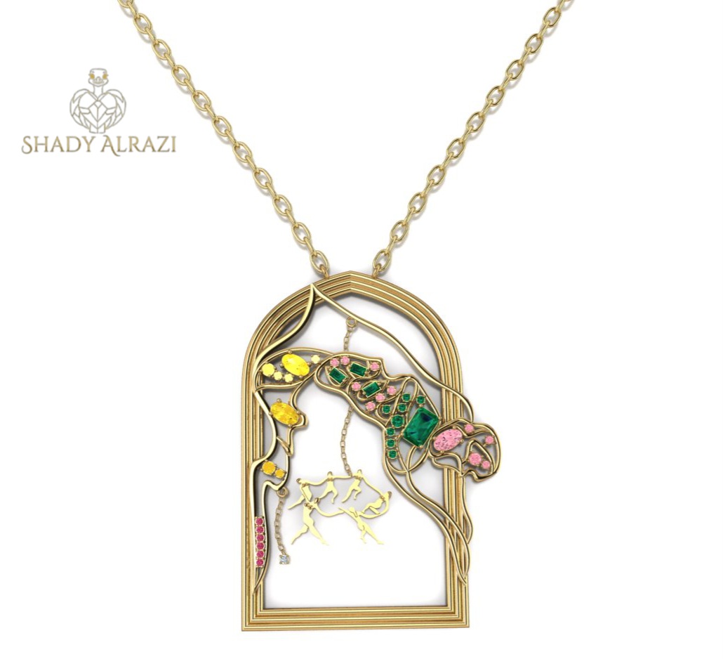 كل حجر هنا ليس مجرد لون، بل حالة شعورية متجسدة في فن خالد، حيث تتحول رقصة ماتيس إلى موسيقى من ذهب وأحجار تُحمل حول العنق. إنها ليست مجرد سلسلة، بل لوحة تحتفل بالحياة وتهمس بالحرية.