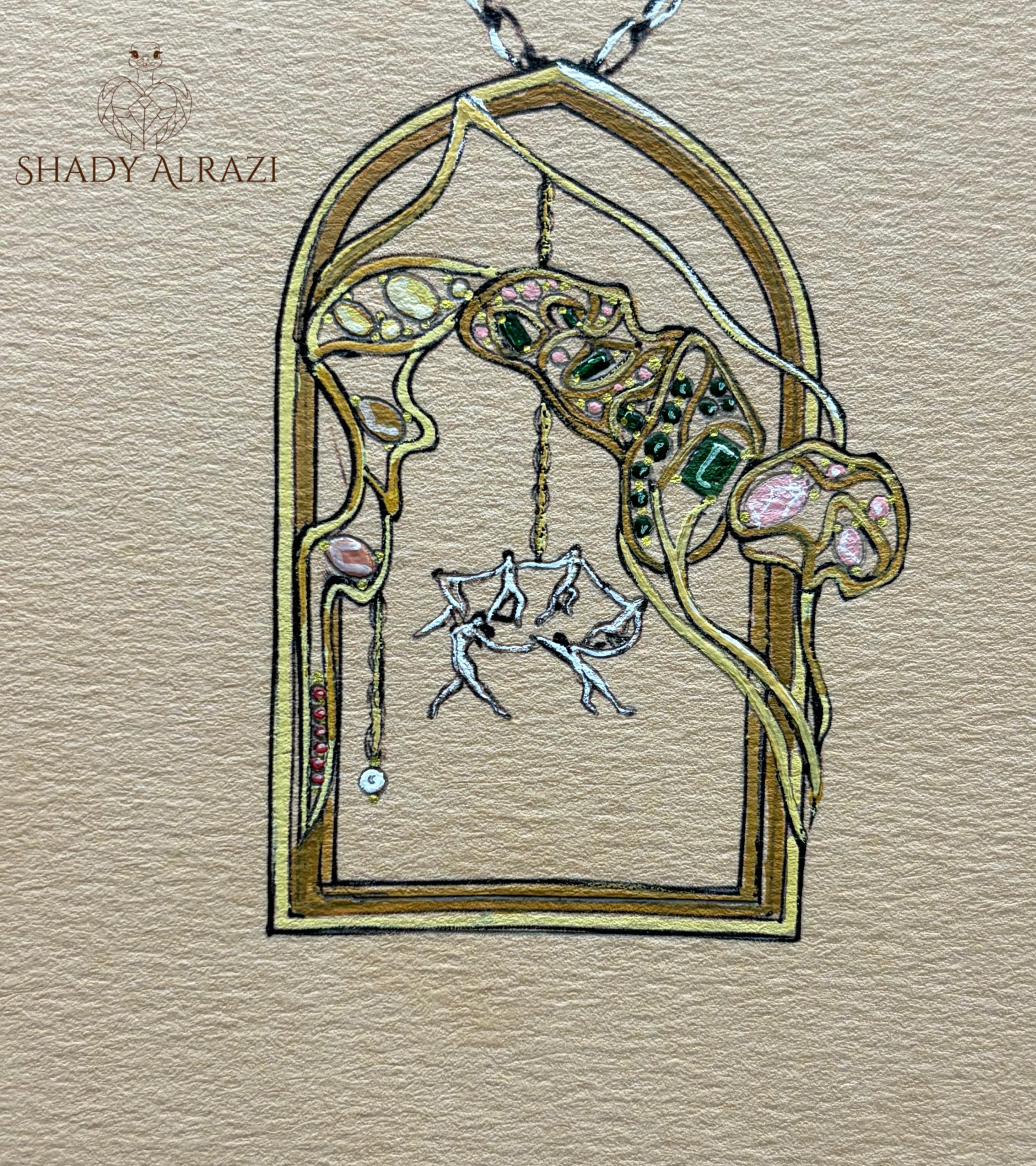 مستوحاة من لوحة هنري ماتيس، تأخذك هذه السلسلة في رحلة فنية ساحرة. في قلبها تتمايل الراقصات الذهبيات، مستوحاة من رقصة الحياة في لوحته الخالدة “سعادة الحياة”. تحوّلت أجسادهن من ضربات فرشاة إلى خيوط من الذهب تتدلّى بخفة داخل الإطار، كأن روح الفن تتحرك بحرية في الهواء.